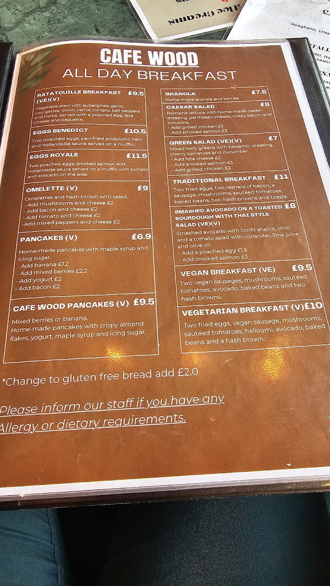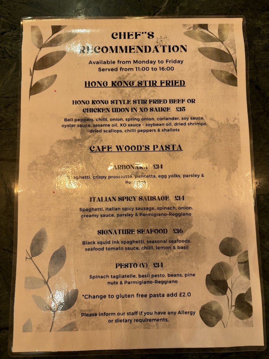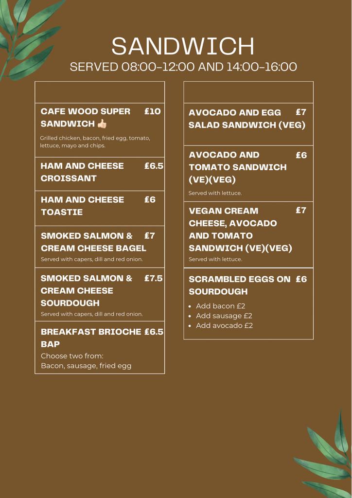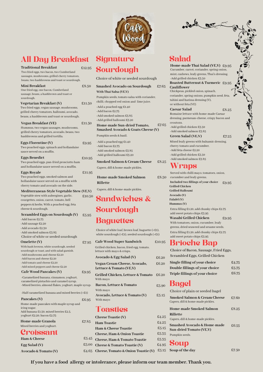 Café Wood at 7 Church St offers a menu that blends classic comfort with inventive twists, making it a versatile spot for any meal of the day. The All Day Breakfast options, including the Traditional Breakfast, Mini Breakfast, Vegetarian Breakfast, Vegan Breakfast, and Eggs Florentine, cater to both hearty appetites and plant-based preferences. Sourdough lovers will enjoy creations like Smashed Avocado on Sourdough with Thai Salsa, Home-Made Sun-Dried Tomato, Smashed Avocado & Goats Cheese, and Smoked Salmon & Cream Cheese, while the Home-Made Smoked Salmon Rillette offers a more indulgent twist. Salads such as Home-Made Thai Salad, Caesar Salad, and Green Salad provide lighter, refreshing options. Wraps and toasties, from Avocado & Egg Salad and Vegan Cream Cheese, Avocado, Lettuce & Tomato to Cheese, Ham & Tomato Toastie, show the café’s skill in transforming simple ingredients into satisfying meals. The Croissant selection, including Ham & Cheese, Egg Salad, and Avocado & Tomato, pairs beautifully with coffee or tea. Fried favorites like Asian Style Fried Squid and Fried Crispy Chicken, along with burgers such as the Home-Made Double Cheese Burger and Crispy Chicken Burger, highlight the café’s indulgent side. Sides and extras, from Sweet Potato Fries to Extra 2 Pcs of Smoked Salmon, allow for customizable plates. The menu also features Chef’s Specials like Udon Noodles, and signature treats including Café Wood’s Waffles and the Chef’s Favourite Waffle. Signature burgers, including the Home-Made Thai Shrimp Cake Burger and Super Crispy Chicken Burger, are standout offerings. Drinks range from classic Americano, Latte, and Cappuccino to indulgent Milkshakes and Smoothies like Berry Go Round and Kale Kick, alongside iced beverages and a curated tea selection. For those seeking lighter fare, sandwiches, wraps, and pasta options such as Italian Spicy Sausage, Signature Seafood, and Pesto round out a menu that is as diverse as it is approachable. With this wide-ranging selection, Café Wood successfully balances comfort, creativity, and quality in every dish.